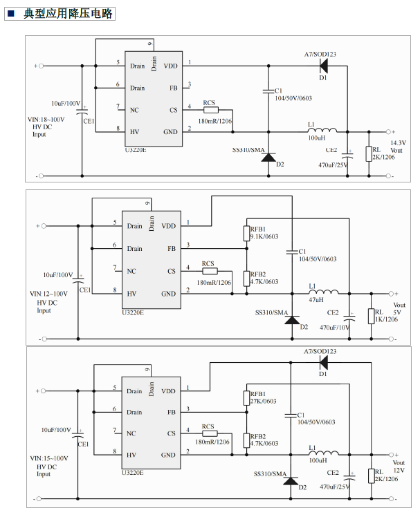 •主要特點(diǎn):VIN: 12~100V(OUT:ADЛ;集成7A 100V (10A 100V) MOS;集成 180V 高壓?jiǎn)?dòng)電路;多模式控制、無(wú)異音工作;支持升壓、降壓和升降壓拓?fù)?默認(rèn)14.3V 輸出(FB 腳懸空);待機(jī)功耗低于 50mw;良好的線性調(diào)整率和負(fù)載調(diào)整率;集成軟啟動(dòng)電路;內(nèi)部保護(hù)功能;過載保護(hù) (OLP):逐周期電流限制(OCP);輸出過壓保護(hù)(OVP);VDD 過壓、欠壓和電壓箝位保護(hù)