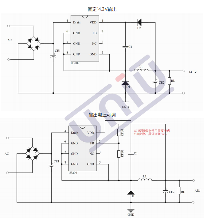 • 默認(rèn)14.3V輸出(FB腳懸空)