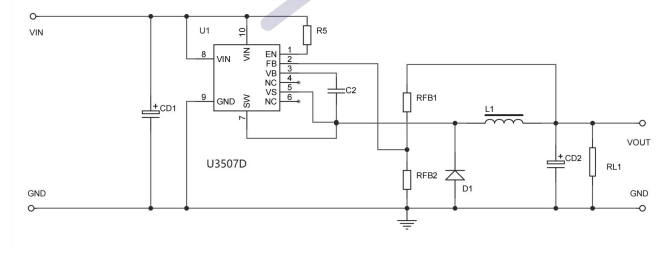 •產(chǎn)品描述:U3507D是一個(gè)高壓降壓開(kāi)關(guān)穩(wěn)壓器內(nèi)置MOSFET。它集成了一個(gè)高側(cè)、高電壓、功率MOSFET,通常電流限制為10A(IPK)。輸入范圍適應(yīng)各種降壓應(yīng)用,使其成為汽車,工業(yè)和照明應(yīng)用的理想選擇。遲滯電壓模式控制采用非??斓捻憫?yīng)。UNIU專有的反饋控制方案最大限度地減少了所需外部組件的數(shù)量。開(kāi)關(guān)頻率為150KHz,允許元件尺寸小。熱停機(jī)和短路保護(hù)(SCP)提供可靠和容錯(cuò)的操作。低靜態(tài)電流允許U3507D用于電池供電的應(yīng)用。U3507D采用DFN5*6-10封裝,帶外露襯墊。