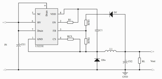 •產(chǎn)品描述:U3223E是一款高性能低成本PWM控制功率器,適用于離線式小功率降壓型應(yīng)用場合,外圍電路簡單、器件個(gè)數(shù)少。同時(shí)產(chǎn)品內(nèi)置高耐壓MOSFET可提高系統(tǒng)浪涌耐受能力。與傳統(tǒng)的PWM控制器不同,U3223E內(nèi)部無固定時(shí)鐘驅(qū)動MOSFET,系統(tǒng)開關(guān)頻率隨負(fù)載(輕載、重載)變化可實(shí)現(xiàn)自動調(diào)節(jié)。同時(shí)芯片采用了多模式PWM控制技術(shù),有效簡化了外圍電路設(shè)計(jì),提升線性調(diào)整率和負(fù)載調(diào)整率并消除系統(tǒng)工作中的可聞噪音。此外,芯片內(nèi)部峰值電流檢測閾值可跟隨實(shí)際負(fù)載情況自動調(diào)節(jié),可以有效降低空載情況下的待機(jī)功耗。U3223E集成有完備的帶自恢復(fù)功能的保護(hù)功能:VDD欠壓保護(hù)、逐周期電流限制、輸出過壓保護(hù)、過熱保護(hù)、過載保護(hù)和VDD過壓保護(hù)等。
