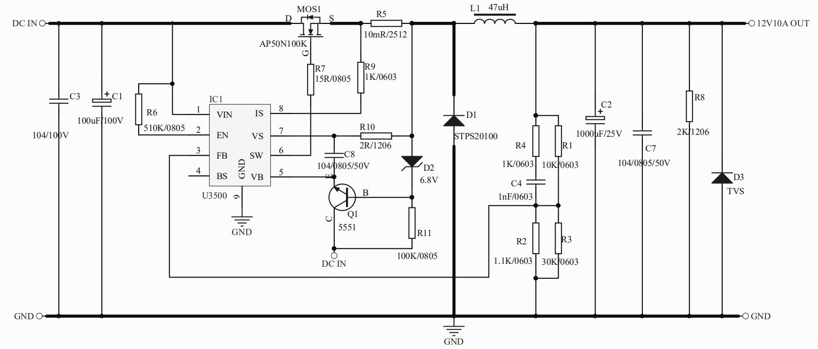 寬10V至120V輸入范圍l DC-DC 12V/10A典型開關電流應用l滯后控制:無補償l 70KHz開關頻率l PWM控制輸入降壓應用l短路關機(SCS)集成IC低靜態(tài)電流l熱關機l可在ESOP-8封裝與外露襯墊
